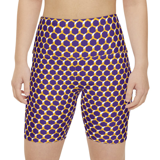 Women's Workout Shorts - Purple/Gold Hex
