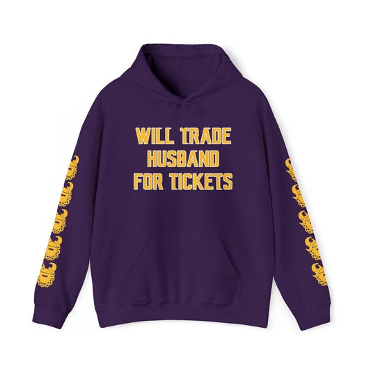Unisex Heavy Blend™ Hooded Sweatshirt - Husband for Tickets + Game Day Helmet (Sleeves)