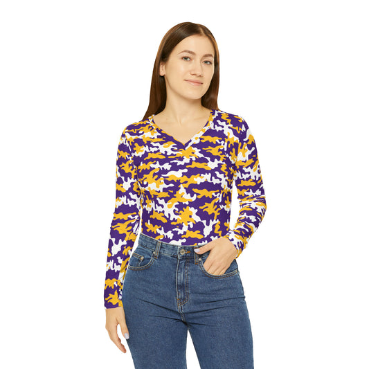 Women's Long Sleeve V-neck Shirt - Purple & Gold Helmets
