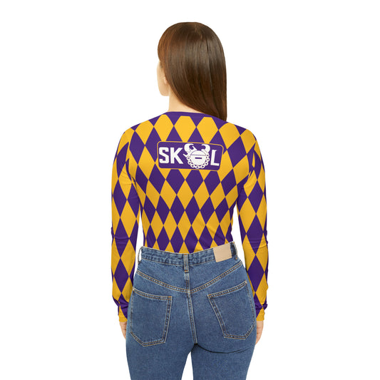 Women's Long Sleeve V-neck Shirt - Purple/Gold Diamonds - The Original