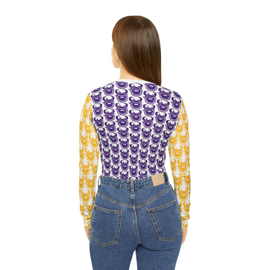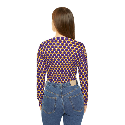 Women's Long Sleeve V-neck Shirt - Purple/Gold Hex