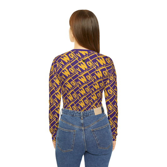 Women's Long Sleeve V-neck Shirt - Gold/Purple - VWO (Framed)