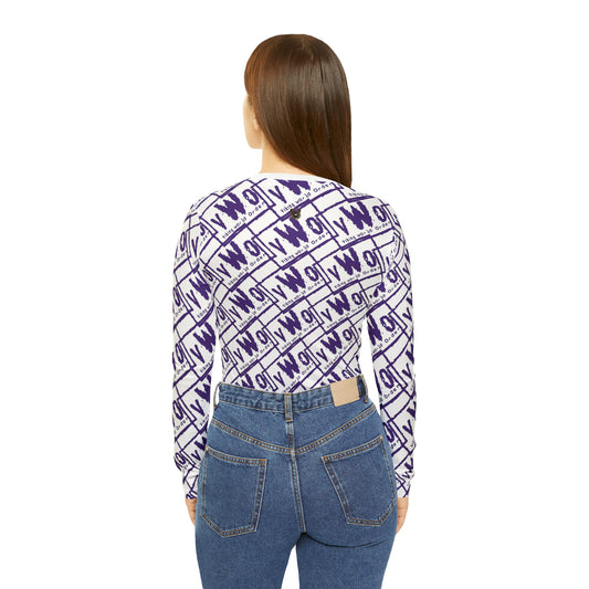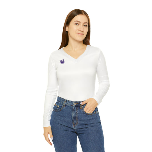 Women's Long Sleeve V-neck Shirt - White/Purple - VWO (Framed)