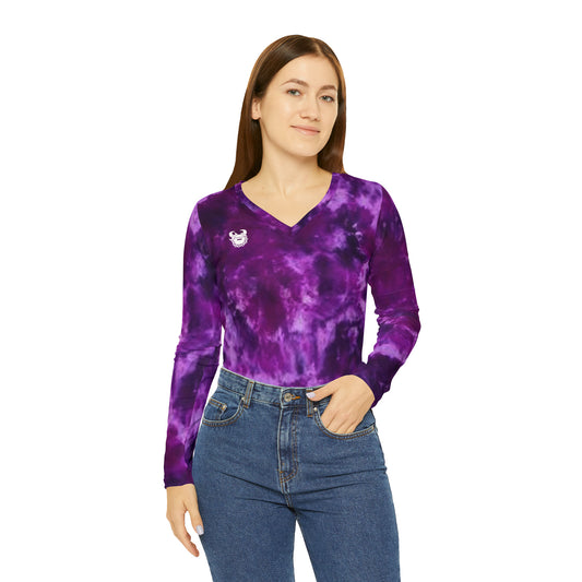 Women's Long Sleeve V-neck Shirt - Purple Tie-Dye - The Original